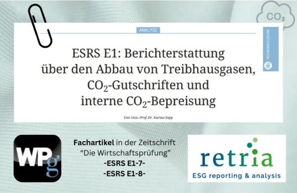 Prof. Dr. Karina Sopp gibt in Ausgabe 24/2023 (15.12.2023) der Zeitschrift „Die Wirtschaftsprüfung“ (IDW Verlag GmbH) einen Einblick in die Berichterstattung nach ESRS E1 über – den Abbau von Treibhausgasemissionen,…